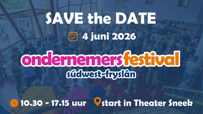Op 4 juni 2026 organiseert Súdwest Onderneemt het Ondernemersfestival: dé dag waarop ondernemend Fryslân samenkomt. Een inspirerend festival met een dynamisch programma vol themaroutes door de hele gemeente SWF, afgestemd op actuele ambities en vraagstukken van ondernemers.